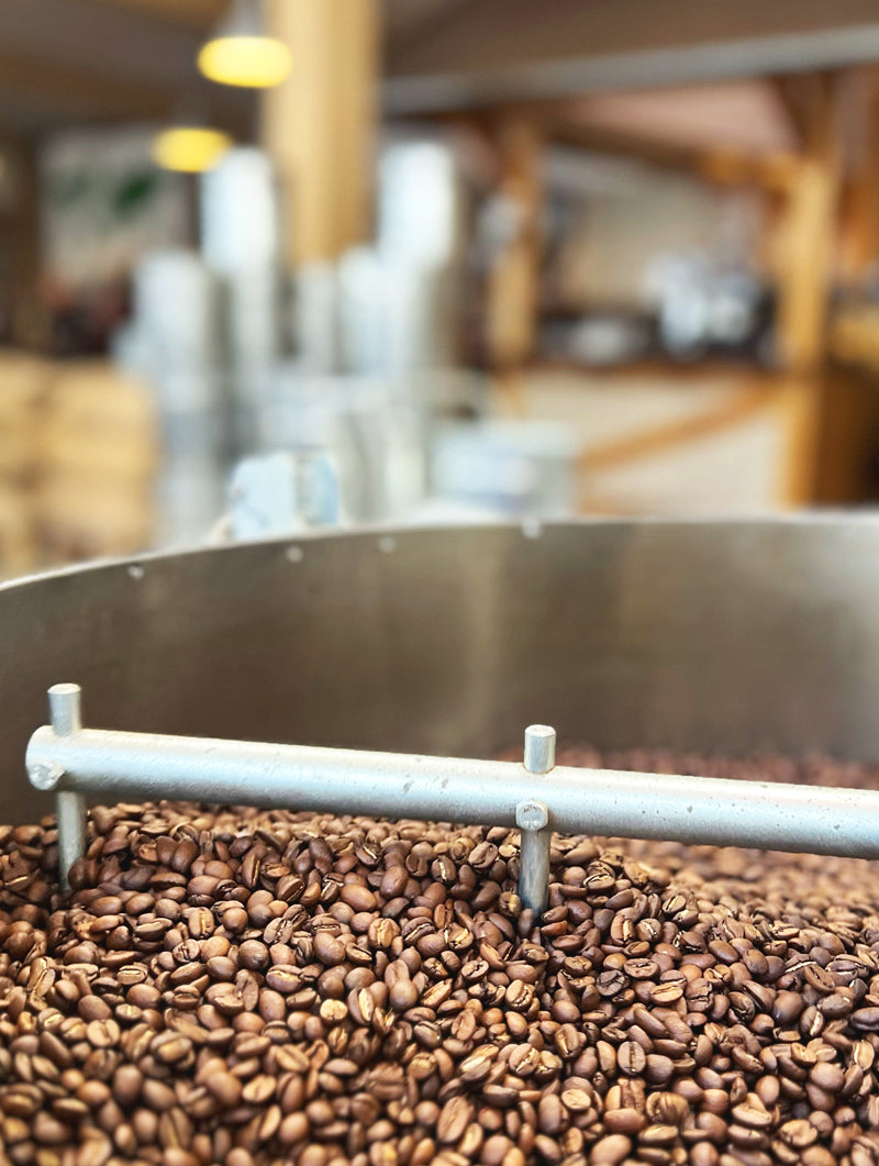 Von Montag bis Mittwoch kannst Du das Rösten unserer Kaffees und unseren gesamten Produktionsprozess live bei einer Tasse Kaffee verfolgen.
