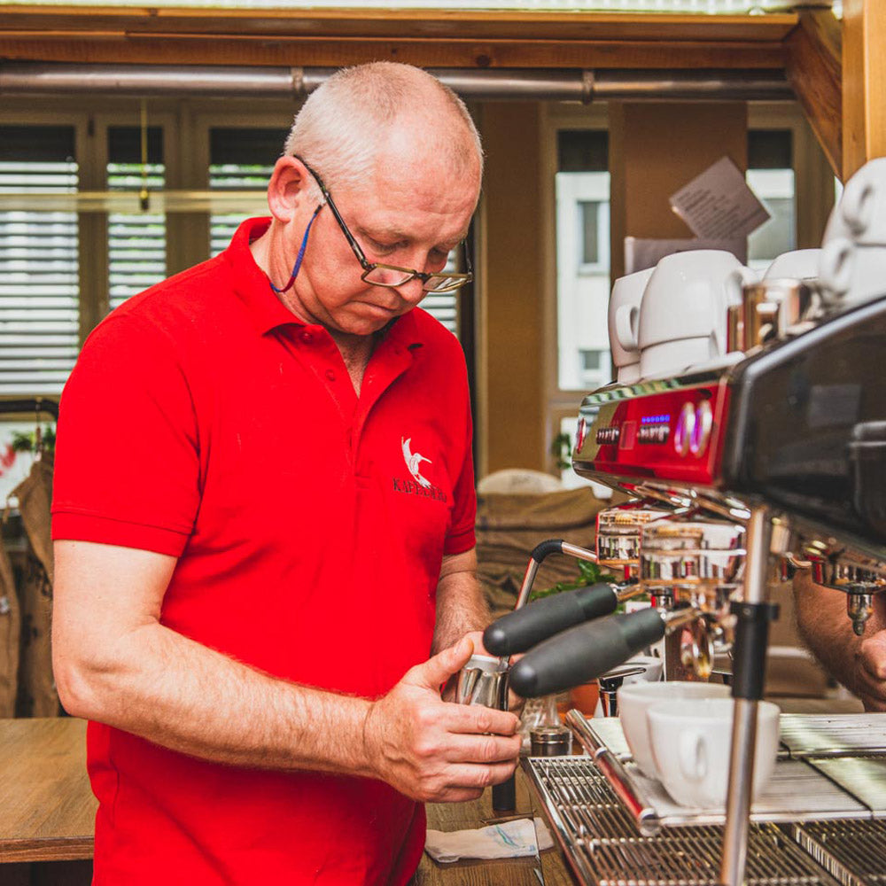 Als Gründer ist Jens seit 2008 in der Kaffeebranche tätig. Er kennt unsere Kaffeebohnen in- & auswendig & berät sowohl unsere Geschäftskunden, als auch die Kunden unseres Cafés & Kaffeebar in der Rösterei.